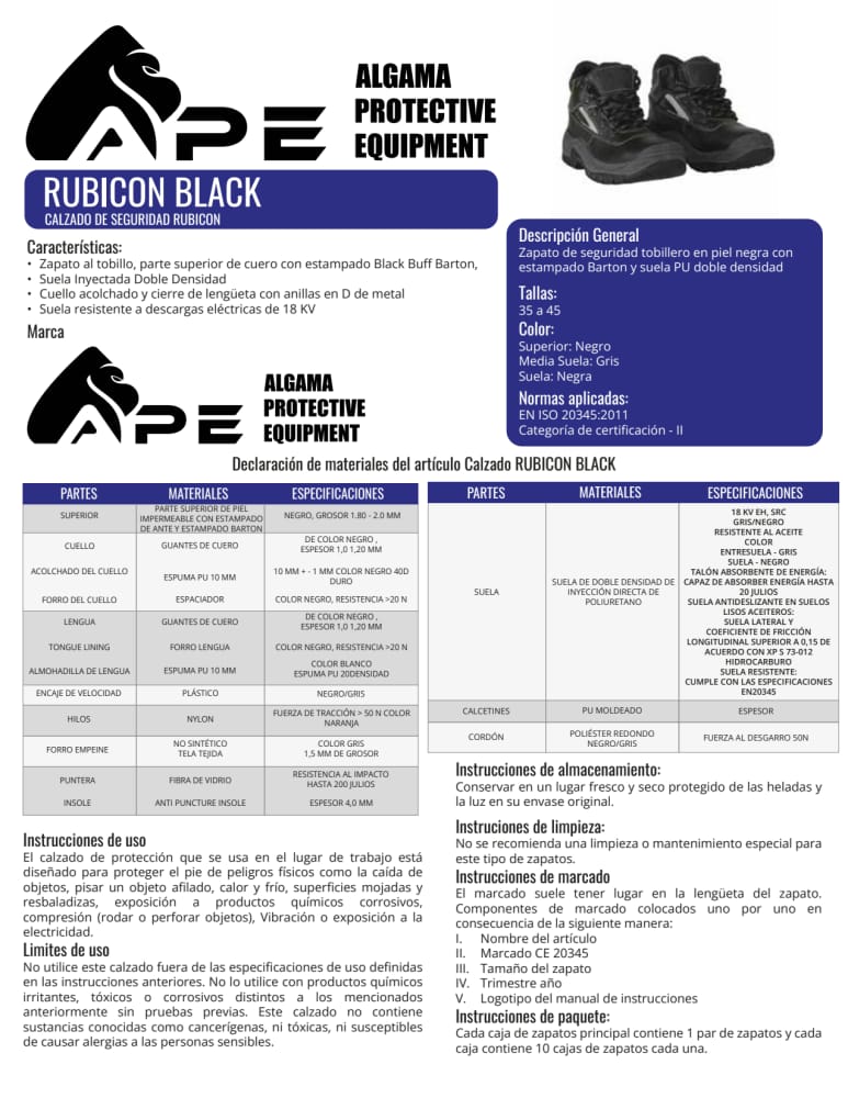 CALZADO INDUSTRIAL MODELO RUBICON NEGRO,44