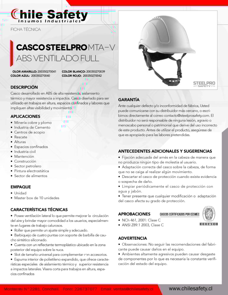 CASCO PARA TRABAJOS EN ALTURA