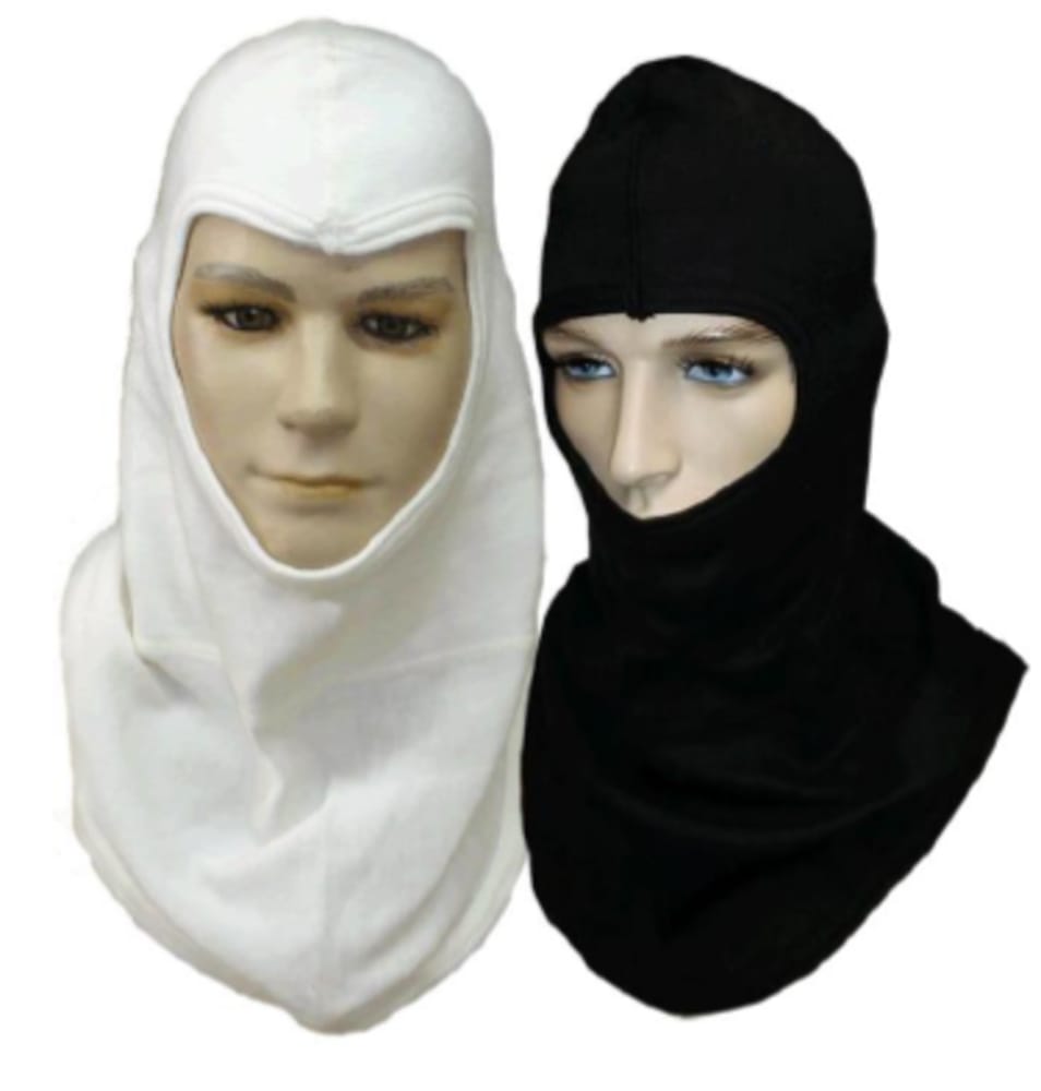 Capucha fabricada 100 % Nomex. Colores: natural y negro. Uso contra Incendio y Zonas con temperaturas Altas. Modelo especial para complementar el traje de bombero. Con el circulo de la cara descubierto para utilizar con Equipo de Aire Autónomo. Protege a temperaturas muy altas y resistente a la flama