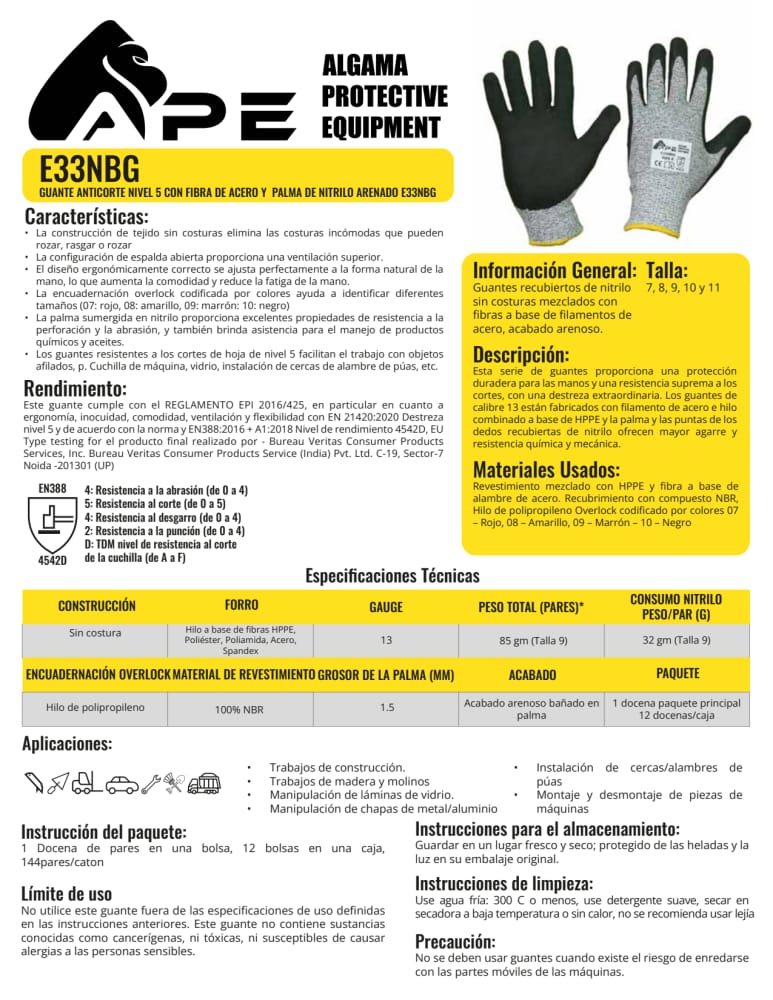 GUANTE ANTICORTE NIVEL 5 CON FIBRA DE ACERO ARENADO M