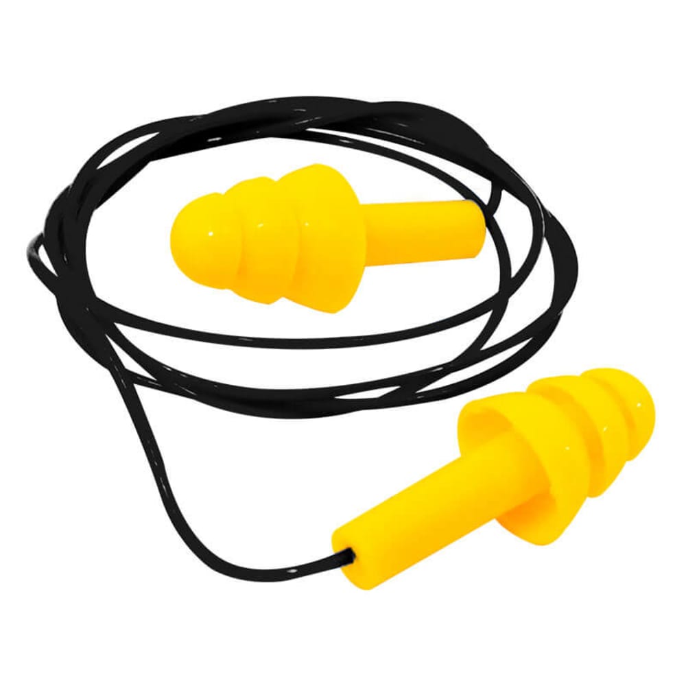 MUTE DUO 2 Tapón de silicona amarillo con cordón de PVC negro, NRR 26 dB, ANKOIC.