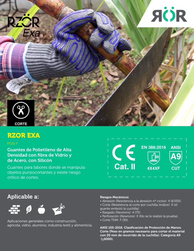 EXA Guante de Polietileno de Alta Densidad fibra de Vidrio y Acero con Silicón Niv Cut 9 - Talla L
